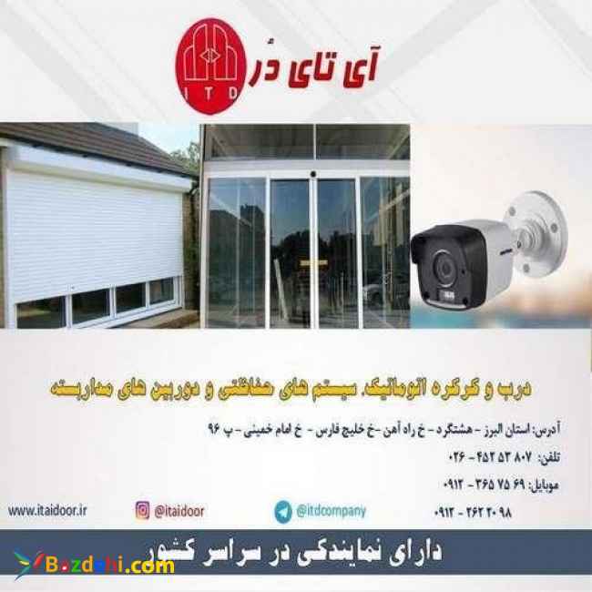 شرکت آی تای در تولید کننده انواع : درب های کرکره ای اتوماتیک ـ درب سریع ـ درب سریع بازشو ـ درب صنعتی ـ درب فولدآپ ـ درب آشیانه هواپیما ـ درب فست رول ـ درب سردخانه ای ـ درب هیبریدی سریع بازشوـ انواع کرکره ـ درب سریع بالارونده ـ درب رولی ـ تیغه فولادی ـ درب صنعتی سریع ـ درب فولددار ـ درب سرعتی ـ درب هیبریدی دوجداره ـ فولدآپ سریع بازشوـ درب اتوماتیک سردخانه ای ـ درب های صنعتی سرعت بالاـ آدرس کارخانه : کرج ـ هشتگرد ـ خیابان راه آهن ـ خیابان خلیج فارس ـ خیابان امام خمینی ـ پلاک 96 تماس با کارخانه : 02645253807ـ 09123657569ـ 09192622098