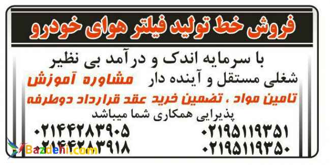 فروش خط تولید فیلتر هوای خودرو با سرمایه کم و سود عالی