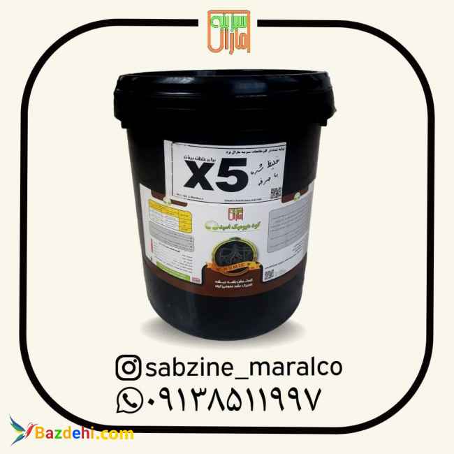 باغلظت معمولی و چند برابر هیومیک اسید? ۱۰ درصد فولویک اسید? ۵ درصد نیتروژن ?۱ درصد فسفر ?۰/۲ درصد پتاسیم محلول در آب? ۳ درصد مزایا: افزایش کمیت و کیفیت محصولات زراعی و باغی افزایش جوانه، شکوفه و بزرگ شدن میوه افزایش مقاومت گیاه نسبت به تنش های خشکی افزایش میکروارگانیسم های مفید خاک قابلیت کلات کنندگی عناصر غذایی موجود در خاک افزایش قابلیت جذب عناصر افزایش مقاومت گیاه نسبت به شوری و خشکی