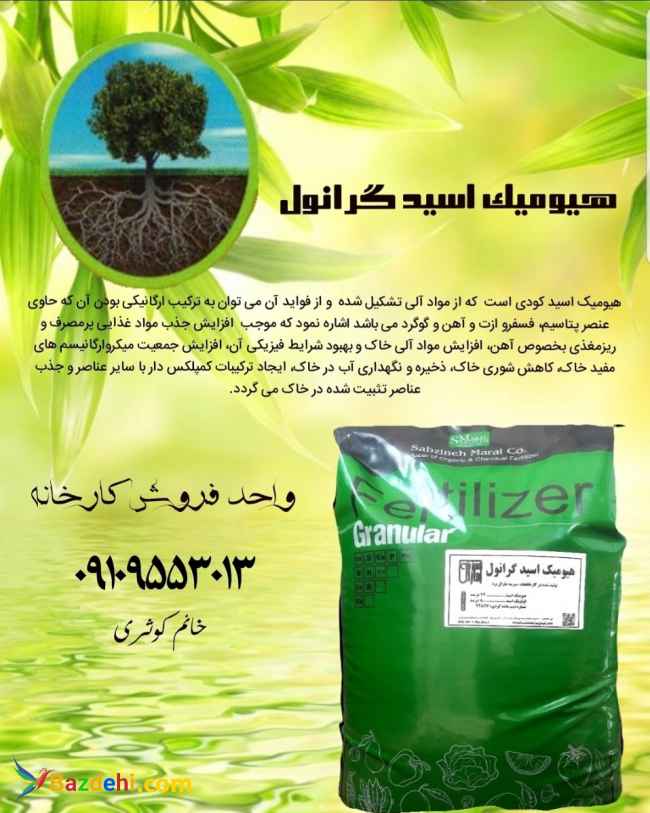 ☘☘☘کود شیمیایی سبزینه مارال ???هیومیک اسید گرانول ✅هیومیک اسید کودی است که از مواد آلی تشکیل شده و از فواید آن می توان به ترکیب ارگانیکی بودن آن که حاوی عنصر پتاسیم، فسفرو ازت و آهن و گوگرد می باشد اشاره نمود که موجب افزایش جذب مواد غذایی پرمصرف و ریزمغذی بخصوص آهن، افزایش مواد آلی خاک و بهبود شرایط فیزیکی آن، افزایش جمعیت میکروارگانیسم های مفید خاک، کاهش شوری خاک، ذخیره و نگهداری آب در خاک، ایجاد ترکیبات کمپلکس دار با سایر عناصر و جذب عناصر تثبیت شده در خاک می گردد. ?ارسال به سراسر ایران ?جهت مشاوره و سفارش با شماره ی ذیل تماس حاصل فرمایید (در تلگرام و واتساپ نیز پاسخگو می باشیم) ?۰۹۱۰۹۵۵۳۰۱۳ خانم کوثری
