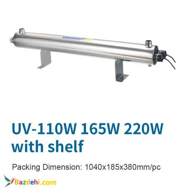 دستگاه یووی UV  جهت تصفیه و ضدعفونی کردن آب در سایز های مختلف صنعتی 10GPM 12GPM 24GPM 36GPM 48GPM به همراه لامپ یووی 35W و 55W یک سر سوکت 16mm × 900mm و کوارتز موجود است شرکت ندای آب پارس 02188434555 09126884783