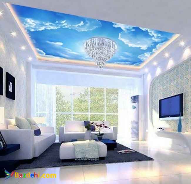 اجرایی سقف کشسان سه بعدی_ساده با نورپردازی رایگان ک فضای ایده آل ب منزل میدهد در طرح و رنگ های مختلف مناسب با سلقیه شما .