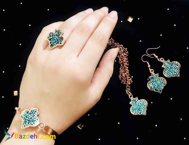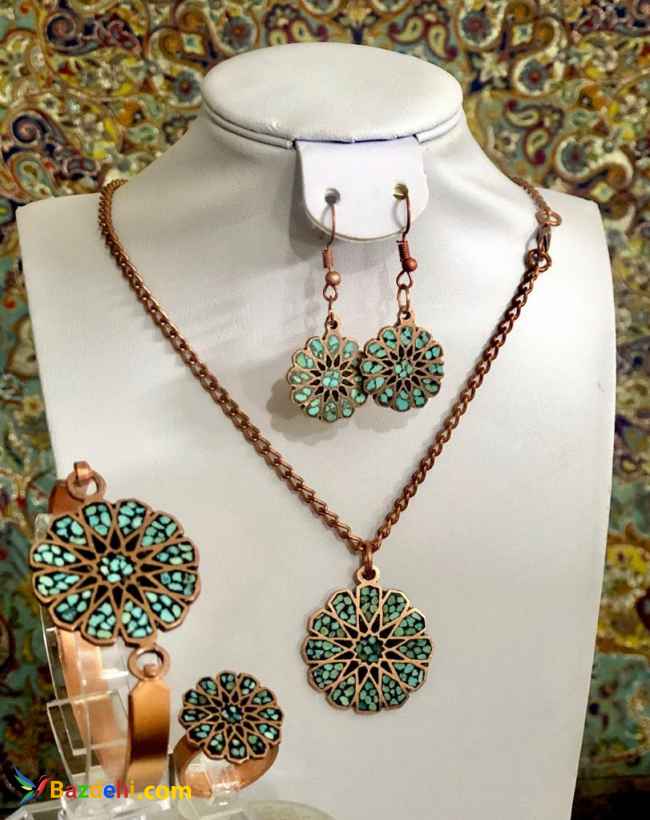 فروش ست زیورآلات سنتی مس و فیروزه در طرحهای مختلف زیبا ، متفاوت ، چشم نواز و خیره کننده جهت استفاده خانم ها در مناسبت ها برای اهدای کادو ی روز زن ، ولنتاین و ...