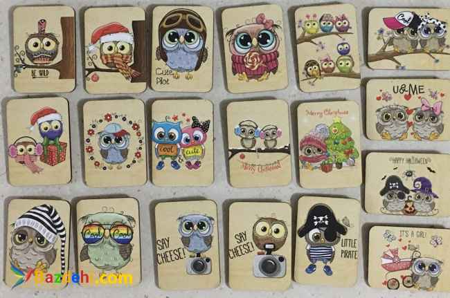 سرکلیدی چوبی و پیکسل مگنت چوبی طرح جغد فانتزی و دختر و پسر