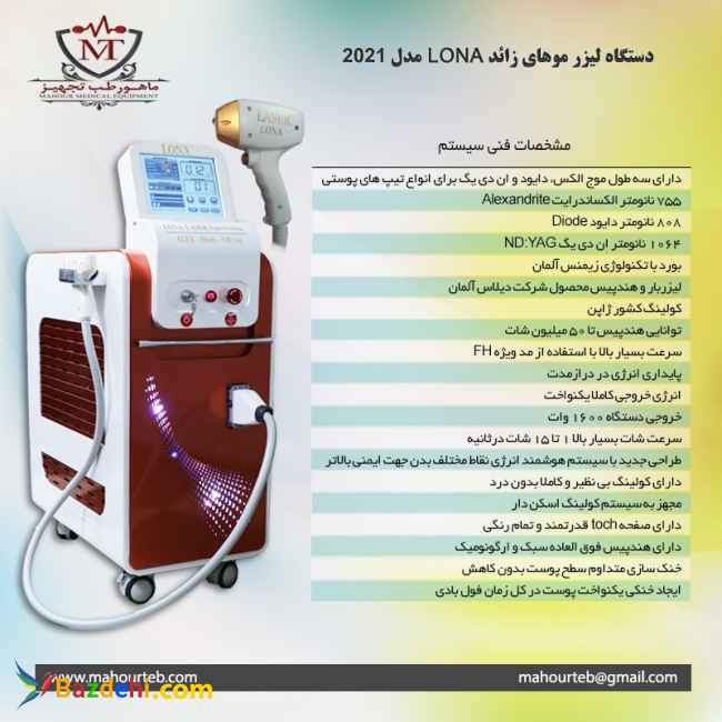 *** مشاوره و تجهیز فقط به صورت حضوری در محل شرکت ماهور طب انجام می شود. *** فروش دستگاه لیزر موهای زائد در قم توسط شرکت تجهیزات پزشکی ماهور طب تولید کننده، وارد کننده و عرضه کننده انواع تجهیزات زیبایی، لیزر، لاغری و جوانسازی با بیش از یک دهه فعالیت در حوزه تولید و فروش دستگاه های زیبایی و لیزر با مجوز از وزارت بهداشت، درمان و آموزش پزشكی معرفی دستگاه لیزر سه طول موج لونا دستگاه لیزر سه طول موج لونا جدیدترین و پیشرفته ترین دستگاه لیزر به منظور حذف موهای زائد برای انواع پوست و مو با تیپ های رنگی مختلف می باشد. این دستگاه لیزر مجهز به سیستم خنک کننده بسیار قوی به همراه چیلر داخلی قدرتمند است که می توان با وجود این قابلیت منحصر به فرد، فرایند لیزر را با توان بالا و بدون ایجاد سوختگی روی سطح انواع پوست و همچنین درد بر روی تمامی تیپ های پوستی انجام داد. فروش انواع دستگاه های زیبایی و لیزر در قم شرکت ماهور طب تولید کننده، وارد کننده و فروشنده انواع دستگاه های زیبایی و لیزر در قم می باشد. برخی از این دستگاه ها عبارتند از: دستگاه لیزر موی زائد لونا، دستگاه آر اف فرکشنال میکرونیدلینگ زئوس، دستگاه لاغری آر اف کویتیشن بلسا، انواع دستگاه های هایفو (اولترا، سه بعدی، چهاربعدی، واژینال، جوانساز، لاغری، لیفتینگ صورت و ...)، دستگاه لیزر رفع تاتوی کیوسوئیچ، دستگاه لیزر تخصصی co2 فرکشنال، دستگاه بادی آنالایزر، دستگاه اسکین آنالایزر و .... فروش دستگاه لیزر مو در قم به روش های مختلف نقد و اقساط بدون بهره همراه با گارانتی و خدمات پس از فروش معتبر انجام می شود. قیمت دستگاه لیزر سه طول موج لونا بسیار مناسب و به صرفه است، چرا که فروش این دستگاه لیزر در قم توسط شرکت اصلی ماهور طب و بدون هیچ واسطه ای انجام می شود. طریقه نصب و راه اندازی دستگاه لیزر لونا و همچنین نحوه کار با آن توسط متخصصین ماهور طب به طور کامل و رایگان به پزشک و اپراتور دستگاه داده خواهد شد. با مراجعه به نمایندگی فروش دستگاه لیزر مو در قم می توانید دستگاه لیزر لونا را به همراه یک سال گارانتی و 10 سال خدمات پس از فروش خریداری کنید. برای دریافت اطلاعات بیشتر در خصوص خرید دستگاه لیزر موهای زائد در قم و کسب اطلاع از قیمت دستگاه با مشاوران ماهور طب در ارتباط باشید. مشاور ماهور طب : 09132042648 - آدرس سایت : https://mahourteb.com/ *** مشاوره و تجهیز فقط به صورت حضوری در محل شرکت ماهور طب انجام می شود*** توجه : شرکت ماهور طب هیچ گونه فروش اینترنتی ندارد!!!