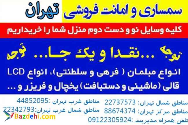 سمساری تهران بهترین خریدار کلیه لوازم منزل در تمام مناطق تهران و شهر کرج در همه ساعات شبانه روز پاسخگوی شما همشریان عزیز خواهد بود .۰۹۱۲۲۳۰۵۹۲۴