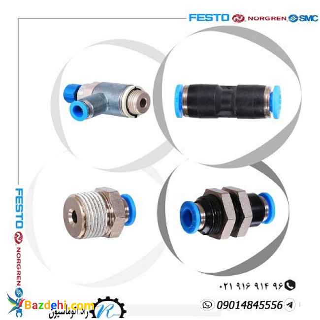 فروش انواع اتصالات پنوماتیک اتصالات پنوماتیک مستقیم زلتویی رابط پنوماتیک مستقیم رابط پنوماتیک زانویی اروپایی و چینی فستو SMC YPC CDC LMC و...