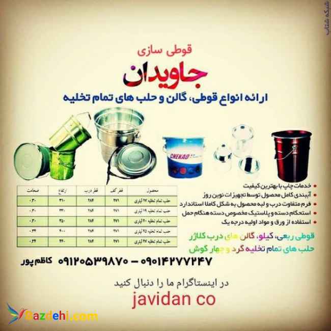 قوطی سازی جاویدان تولید انواع قوطی ، گالن و حلب های تمام تخلیه و ارائه خدمات چاپ تولید قوطی ربعی ، نیمی ، کوارتز ( کیلو ) ، ۴ لیتری درب و حلقه ساده یا دوبل حلب های تمام تخلیه ۵ الی ۳۰ لیتر ارتفاع 20الی 47سانتیمتر استفاده از مواد درجه 1 با کیفیت بالا مخصوص رنگ، شیمیایی، گریس، روغن، هاردنر ، اپوکسی ،تینر ، انواع حلال ، قیر ، پودرهای صنعتی، کودهای شیمیایی، سموم شیمیایی همراه1: 09120539870 همراه 2: 09014277247 تلفن: 021۹۱۰۱۲۴۶۷ اینستاگرام: https://instagram.com/javidan_can آدرس: تهران جاده قدیم قم شورآباد نوار تیپ پارس پارس دریپ کالای آبیاری پارس مدرن لوله قشقایی لو له نخدار پارس نوار پارس نوار تیپ پارس آبیاری پارس آبیاری قطره ای نوار قطره قطره پلاستیکی پارس کالای آبیاری پارس سیدرضا موسوی نوار آبیاری قطره ای لوله نخدار لوله های نخدار قشقایی نخدار اتصالات نوار و لوله نخدار قشقایی نوار تیپ، نوار ابیاری پارس دریپ نوارآبیاری قطره ای نوار تیپ قطره کشاورزی آبیاری قطره ای اتصالات لوله لوله لوله سه لایه لی فلت آبپاش اتصالات آبیاری ابیاری برا کشاورزی تجهیزات کشاورزی کالای کشاورزی بغل دوخت... پلاک ممتد(لاین وسط) وسط دوخت بافشارشکن جدید نوارآبیاری قطره ای بغل دوخت کود و سم و بذر نایلون پلاستیک کشاورزی پارس دریپ وسایل کشاورزی وسایل آبیاری آبیاری پیشرفته نوار آبیاری اسم وسایل کشاورزی ابزار وسایل کشاورزی وسایل کشاورزی جدید وسایل کشاورزی قدیمی ادوات کشاورزی تیلر کارخانه ادوات کشاورزی اجاره ادوات کشاورزی وسایل کشاورزی دستی قیمت لوله سه لایه لوله سفید سه لایه لوله سه لایه وحید لوله سه لایه پلی پروپیلن قیمت لوله سه لایه نیوپایپ لوله پنج لایه لوله سه لایه اذین لوله های سه لایه پی وی سی اتصالات لوله پلیمری اتصالات لوله گالوانیزه اسامی اتصالات لوله آب pdf نام اتصالات لوله سفید اب اتصالات لوله فلزی قیمت اتصالات لوله کشی آب ساختمان قیمت اتصالات لوله سفید کاتالوگ اتصالات لوله سفید قطره چکان تنظیمی قیمت قطره چکان قطره چکان کشاورزی قیمت قطره چکان نوزاد قطره چکان ایرانی قطره چکان درخت قطره چکان پلاستیکی دستگاه نوار تیپ نوار تیپ کشاورز کاتالوگ نوار تیپ آبیاری فروش نوار تیپ تهران دبی خروجی نوار تیپ نوار تیپ آیتک انواع نوار تیپ آبیاری قطره ای قیمت نوار تیپ قطره ای قیمت نوار تیپ 1000 متری قیمت شیلنگ قطره ای گلخانه کاتالوگ نوار تیپ آبیاری قیمت نوار تیپ پلاک دار نوار تیپ کشاورز قیمت هر رول نوار تیپ شرکت لوله نخدار قشقایی لوله نخدار آسایش شرکت مدرن لوله قشقایی نوار آبیاری پلاکدار نوارهای ابیاری نوار تیپ درزدار قیمت مواد اولیه نوار تیپ دبی خروجی نوار تیپ نوار تیپ ایرانی آبیاری نواری تیپ نوار pvc قیمت نوار اتویی ام دی اف نوار پی وی سی چیست نوار پی وی سی کارن قیمت نوار لبه اتویی نوار پی وی سی ارزان قیمت نوار پی وی سی اتویی نوار پی وی سی پشت چسب دار روش محاسبه آبیاری قطره ای صفر تا صد آبیاری قطره ای نمونه طرح آبیاری قطره ای قیمت آبیاری قطره ای آبیاری قطره ای درخت معایب آبیاری قطره ای نکات مهم در آبیاری قطره ای آبیاری قطره ای چیست نایلون کشاورزی چیست کارخانه تولید پلاستیک کشاورزی نایلون کشاورزی تهران نایلون گلخانه قیمت نایلون کشاورزی کیلویی نایلون عریض مشکی نایلون عریض کشاورزی قیمت پلاستیک هندوانه قیمت سیم تونلی کشاورزی سیم کشاورزی قیمت سیم کشاورزی فروش سیم کشاورزی سیم گالوانیزه کشاورزی