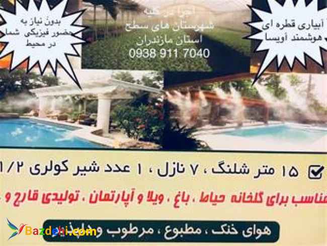 طراحی و اجرای آبیاری قطره ای هوشمند و نصب انواع مه پاش در کلیه شهرهای استان مازندران و شهرهای ساحلی مانندساری، نوشهر، چالوس، محمودآباد، نور و رویان و .... قابل اجرا در باغچه منازل، ویلاها و شهرک ها و فضاهای سبز شما نصب انواع مه پاش صنعتی، نیمه صنعتی و خانگی شماره همراه دیگر 09111525196 ابيارى قطره اى