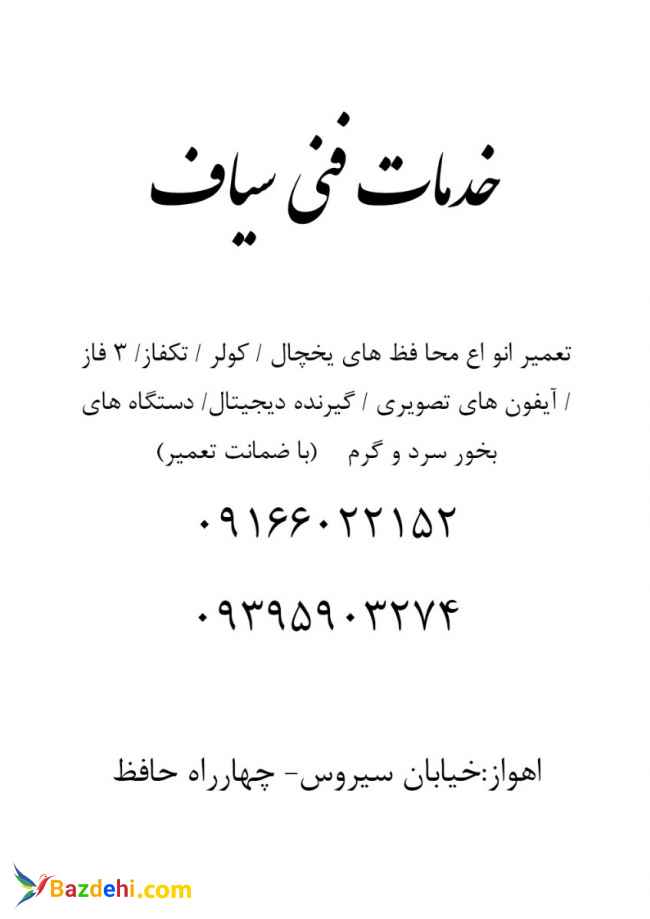 تعمیر انواع محافظ های یخچال / کولر / تکفاز / 3فاز / آیفون های تصویری / گیرنده دیجیتال / و دستگاههای بخور سرد و گرم خانگی و سالن های آرایشی با ضمانت تعمیر 09395903274