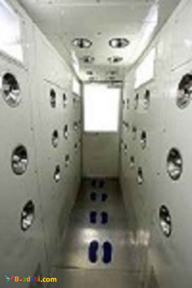 اساس كار اتاق دوش هوا متكي بر پرتاب هواي فشرده از طريق نازل هاي متعدد در داخل اتاق به سمت افراد