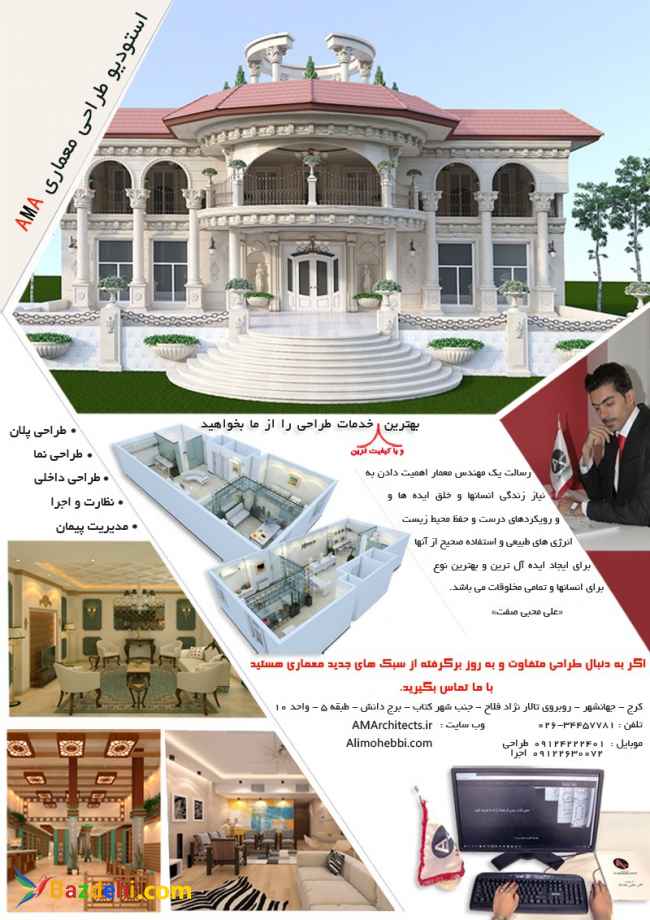 استودیو طراحی معماری AMA طراحی - نظارت - مدیریت پیمان و اجرای معماریسبز - مسکونی - تجاری - اداری - ویلا طراحی و ساخت متناسب با بودجه و سلیقه شما با متد جدید سبک های معماری اعتبار ما = اعتماد شما = سود شما