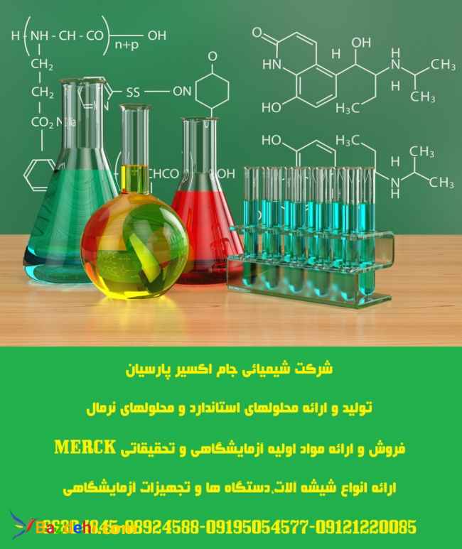 شرکت شیمیائی و صنعتی پارسیان تولید کننده: پودر تست سختی کل-پودر تست سختی کلسیم(مراکساید)-بافر آمونیاکی-محلول تیتراسیون تتراپلکس 3 معرف تترامتیل بنزیدین(مخصوص تست کلر آزاد در آب) و محلول ارتوتولیدین (مخصوص تست کلر آزاد در آب) معرف اریو کروم بلک تی(مخصوص تست سختی کل آب) EBT محلول تتراپلکس3(مخصوص تست سختی کل آب) و معرف نسلر (مخصوص تست آمونیاک در آب) EDTA محلول فنل رد(مخصوص تست پی اچ در آب) و محلول یونیورسال تست پی اچ TRISS BUFFER PH=6.0-PH=8.0 محلول بافر تریس تولید انواع محلولهای استاندارد فلزات،آنیونها و کاتیونها با غلظت 1000mg/l شامل محلول استاندارد آلومینیوم،باریم،پالادیوم،پلاتین،نقره،روی،نیکل،کبالت،تالیم ،طلا و...ومحلول استاندارد نیترات،سولفات،کلراید،نیتریت ،سیلیکات،استات،سولفیت و... تولید انواع محلولهای (تیترازول)نرمال و 0.1 نرمال به حجم رسیده شامل محلول نرمال و 0.1 نرمال:اسید کلرئیدریک،اسید نیتریک ،اسید سولفوریک،هیدروکسید سدیم،هیدروکسید پتاسیم،تیو سولفات سدیم،نیترات نقره،کلرور قلع،کربنات سدیم،ید،پرمنگنات پتاسیم،دی کرومات پتاسیم،کرومات پتاسیم،نیترات باریم و...بصورت محلولهای به حجم رسیده یک لیتری و حداقل 18 ماه ماندگاری تولید محلولهای استاندارد کالیبراسیون کنداکتیویتی(هدایت) COD,TOC،PH BUFFERS,TURBIDITY&COLOUR تهران، خيابان استاد نجاتاللهي، انتهاي خيابان سميه، كوچه پورموسي، پلاك 17، طبقه سوم، واحد 12 تلفن: 88804845 و 8-88802917 و 9-88924588 89774845 همراه: 09195054577 و 09121220085