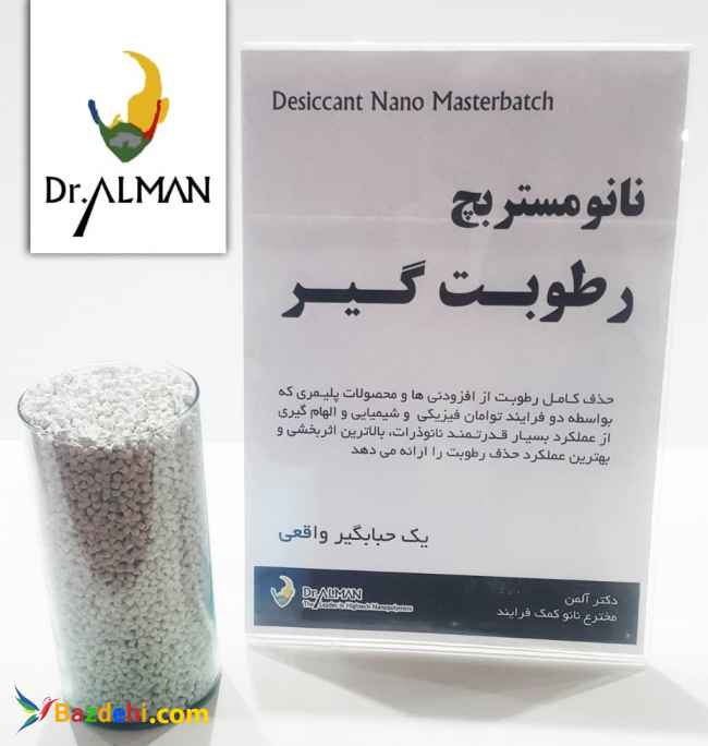نانو مستربچ جاذب رطوبت قویترین افزودنی خشک کن یا به اصطلاح رطوبت گیر در کشور می باشد که به منظور حذف کامل رطوبت از افزودنی ها و محصولات پلیمری به واسطه دو فرآیند توامان فیزیکی و شیمیایی و الهام گیری از عملکرد بسیار قدرتمند نانو ذرات بالاترین اثر بخشی و بهترین عملکرد حذف رطوبت و رفع کلیه نواقص لنز شدگی , ايجاد تاول ، ایجاد حفره , لک شدگی , سوراخ شدگی و پارگی , طراحی و تولید می گردد . برای اولین بار در کشور دارای ثبت اختراع انحصاری محصولی از برند دکتر آلمن ( شرکت دانش بنیان نانو بسپار فکور ) WWW.Dr-ALMAN.COM شماره تماس دفتر شیراز 071-32232482 071-32232483 شماره تماس دفتر تهران 021-54032289 www.instagram.com/DR.ALMAN.CO ALMAN DRY (Desiccant Nano Masterbatch) "Made by "Dr ALMAN The Leader in Hightech Nanopolymers