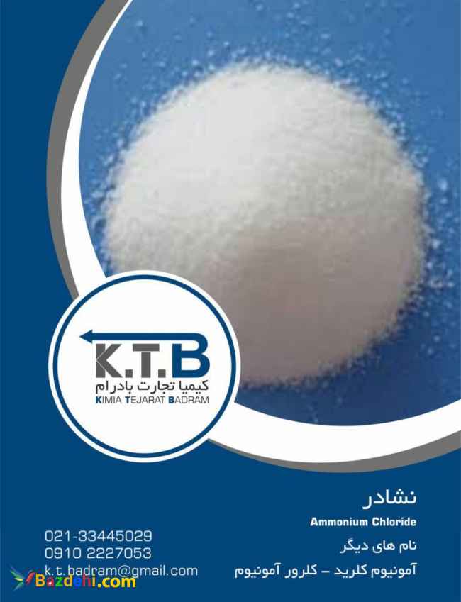 فروش کلرید آمونیوم ، نشادر فروش ویژه نشادر در کیسه های 25 کیلویی آمونیوم کلرید یا نِشادُر با فرمول شیمیایی NH4Cl یک ترکیب غیر آلی است. نمک سفید بلوری با قابلیت بالای حل شدن در آب، محلول آمونیوم کلرید یک اسید ملایم است. فرم طبیعی و معدنی آن سال آمونیاک نام دارد. نوع معدنی آن از سوزاندن ناکامل زغال سنگ تراکم گازهای مشتق از آن و همچنین از برخی از آتشفشان ها بدست میآید. این محصول حاصل واکنش هیدروکلریک اسید و آمونیاک است. موارد مصرف و کاربرد کلرید آمونیوم: استفاده در ساخت باطری های خشک ، به عنوان الکترولیت خشک. در صنایع الکترونیک به عنوان حکاکی کننده در ساخت مدارهای چاپی و کمک به لحیم کاری استفاده می گردد. در کشاورزی به عنوان کود ازته به همراه کودهای فسفاته به مزارع برنج داده می شود. در ضمن کاربردهای متنوعی در صنایع دارویی ، غذایی ، نساجی ، چرمسازی ، چاپ و رنگ دارد. کیمیا تجارت بادرام جهت سفارش و درخواست لطفا با شماره موجود در آگهی تماس بگیرید 02133444929 02133445029 09102227053