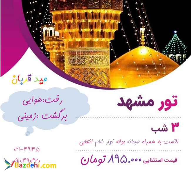 ?هزاره گشت افق? #تور مشهد ?ویژه عید قربان 4 روزه تاریخ حرکت 19 مرداد ماه? ?رفت:هواااااایی ?برگشت:زمینی ❌❌فقط فقط 895.000 تومان خانم معصومی 103 ☎️02149145 ?09101490420