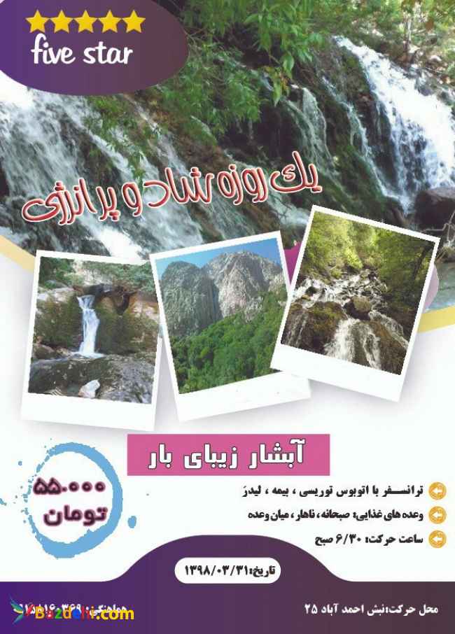 برنامه تور یک روزه #Five star ? مکان : بازدید از روستا بار نیشابور و پیاده روی در مسیرتا #آبشار ? ? جمعه31خردادماه ? ساعت حرکت6/30 صبح وسایل مورد نیاز : کفش مناسب ??? لباس گرم ?? کلاه آفتابی ? عینک آفتابی ? زیرانداز شخصی فلاکس ☕️ تنقلات ??? کارت شناسایی? وسایل شخصی خدمات : بیمه ? ترانسفر پذیرایی #فولبرد صبحانه نهار تیم سرپرستی?‍♂️ ?نرخ تور55000 تومان ?حضور در محل ۱۵ دقیقه قبل از حرکت الزامیست. ?ارسال مشخصات ( نام و نام خانوادگی ، کد ملی ، سال تولد) جهت صدور بیمه الزامی میباشد. مکان تجمع عزیزان : نبش احمداباد 25 5859_8311_3498_6776 مجتبی صباغ ???لطفا عکس فیش واریزی ارسال شود??? #رزرو: ?09158160369 مجتبی صباغ تورهای گروهی Five star