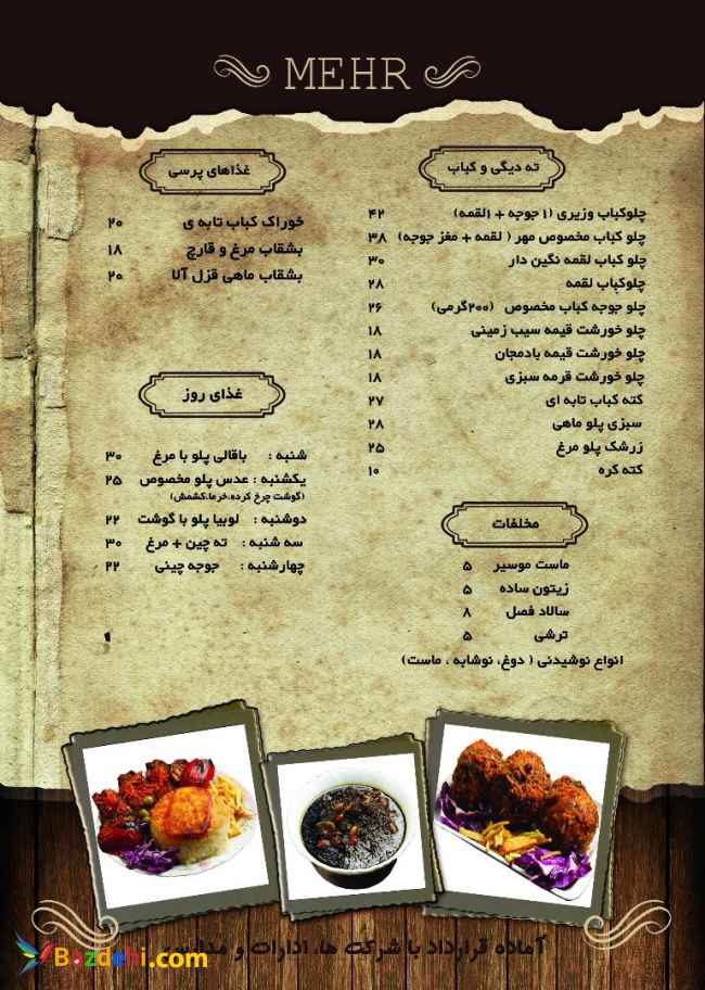 تهیه غذای خانگی مهر آماده عقد قرارداد با کلیه شرکتها و ادارات و موسسات و مدارس با شرایط ویژه در محدوده زرتشت و فاطمی و خیابان ولیعصر