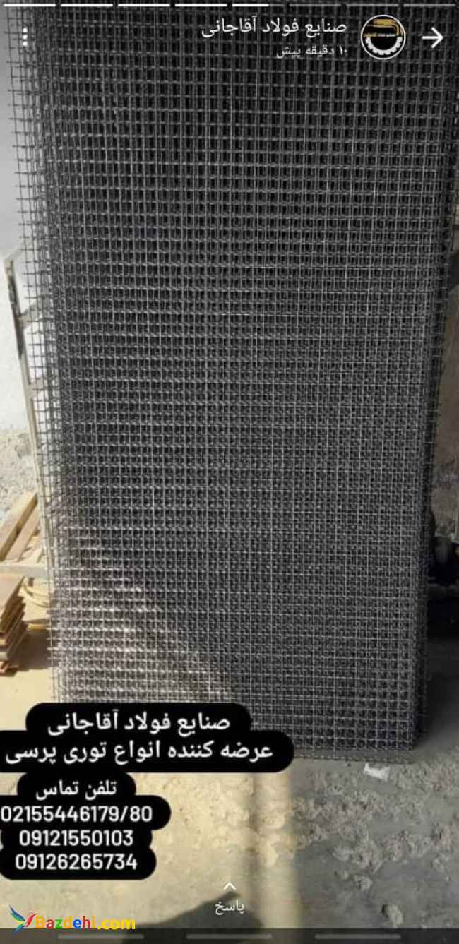 صنایع فولاد اقاجانی ( تولید و پخش رابیتس ) صنایع فولاد اقاجانی بزرگترين مركز پخش رابيتس بوده كه با همكاري جمعي از توليد كنندگان اقدام به كنترل كيفي انواع رابيتس هاي توليدي نموده و آنها را دراختيار مشتريان محترم در تهران و كليه شهرستان ها قرار ميدهد. تولید کننده رابیتس و توری حصاری پرسی,گابیون,سیم خاردارهای خطی و حلقوی,مفتول ارماتوربندی,میلگرد,نبشی, وشبکه های پیش جوش فولادی, بی رقیب در کیفیت و قیمت, سلام از تولید کننده واقعی خرید کنید, با یک بار خرید مشتری دایمی ما میشوید,تولید کننده مصنوعات فلزی{ رابیتس در وزنها و ستونهای مختلف ) استفاده از مرغوب ترين متريال های استاندارد • بالا ترین کیفیت رابیتس با استحکام بالا • تولید محصولات استاندارد(240*60) • استفاده از مرغوب ترین متريال های جهانی • به کارگیری نوین ترین خطوط تولید تمام اتوماتیک با مناسب ترین قیمت. راه های ارتباطی: تلفن : 09126265734 09121550103 02155446179 02155446180 آدرس : اتوبان ازادگان بازار بزرگ آهن مکان فاز 3 مرکزی پلاک474و 475 اینستاگرام : https://www.instagram.com/sanayefoladaghajani487/ https://www.instagram.com/sanaye_folad_aghajani/ تلگرام : t.me/amiraghajaniii