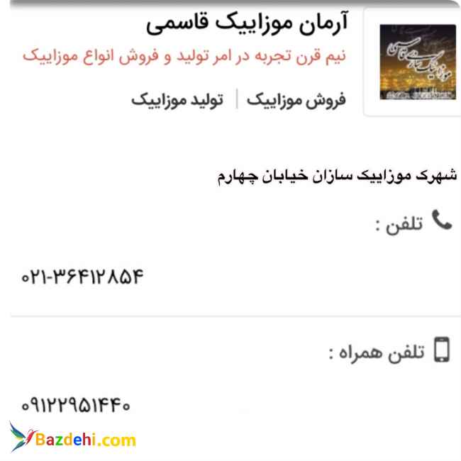 موزاییک و واش بتن قاسمی با بیش از نیم قرن تجربه در امر تولید و فروش انواع موزاییک واش بتن جدول های فانتزی موزاییک پلیمری و خشکه چینکامل ترین مجموعه تولیدی و عرضه مصنوعات سیمانی خرید کالای با کیفیت مستقیم از تولید کننده بدون واسطه و با مناسب ترین قیمتواحد کنترل کیفیت و نظارت آخرین تماس را با ما خواهید گرفت ...