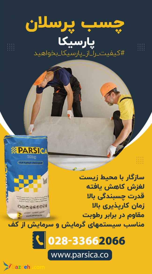 چسب سنگ پرسلان پارسیکا چسب سیمانی سازگار با محیط زیست لغزش کاهش یافته قدرت چسبندگی زمان کارپذیری بالا مقاوم در برابر رطوبت مناسب برای سیستم های گرمایش و سرمایش از کف مناسب برای چسباندن سرامیک های پرسلان **با بیش از 10 سال سابقه کار** ** تولید عمده** ** با بالاترین کیفیت** **ارسال به تمام نقاط کشور ** جهت مشاوره و دریافت اطلاعات بیشتر، با کارشناسان ما تماس بگیرید. * ساعت پاسخگویی 8 الی 15 * شماره تماس 09121823873 ? 09359384874 خط واتساپ ? ☎02833662066 http://instagram.com/parsica.co https://parsica.co/ پارسیکا تولید ، توزیع و صادر کننده محصولات شیمیایی ساختمان