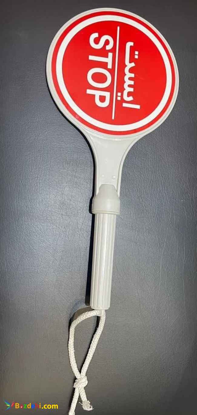 جهت اعلام هشدار دارای دو وجه یک سمت ایست با رنگ سفید زمینه قرمز سمت دیگر آهسته با رنگ سفید زمینه سبز مواد به کار رفته دارای خاصیت بازتاب نور جنس PVC دارای دسته پیچی با قابلیت جداشدن دارای بند در انتهای دسته آدرس:اصفهان خیابان پروین نبش حکیم شفایی دوم تلفن تماس:03132524301