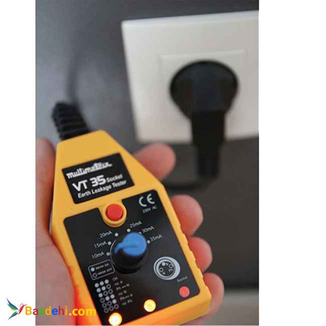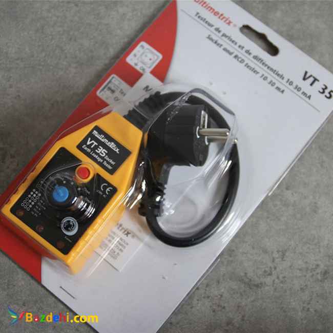 تستر کلید جریان RCD مولتي‌متريكس مدلVT35 ، دستگاهي است که جهت تشخيص اشكالات كليد جريان نشتي و نیز جهت تست عدم اتصال سيم ارت به پريز و جابجايي يا قطع اتصال سيم ارت، فاز و نول مورد استفاده قرار میگرد. تستر کلید جریان RCD ابزاری بسیار مفید جهت استفاده براي مهندسين و تكنسين‌هاي ناظر امور تاسيسات برق می باشد. شاید بتوان به جرات گفت VT35 اولین تستر کلید جریان نشتی می باشد که به جامعه مهندسی و برق ایران توسط شرکت یکتا آموت عمران به عنوان نماینده انحصاری مولتیمتریکس فرانسه معرفی گردید تا کاربران با خیالی راحت تر بتوانند نسبت به بررسی و تایید لزوم و وجود ارت در هر نقطه ای اظهار نظر کنند این دستگاه جهت استفاده برای مهندسین و تکنسین‌های ناظر امور تاسیسات برق کاربرد فراوانی دارد که در بررسی سیستم برق کلیه واحدهای مسکونی، اداری و تجاری بدون اتلاف وقت و هزینه زیاد امکان اشکال‌یابی را فراهم می‌کند.این دستگاه ساخت کمپانی فرانسوی مولتی‌متریکس است. تحقیق، نوآوری و قابلیت اطمینان بالای محصولات و دفتر نمایندگی در سراسر دنیا، کمپانی MULTIMETRIX را به عنوان پیشرو در صنعت ساخت تجهیزات اندازه‌گیری به صورت جهانی معرفی کرده. بهره‌مندی از پیشرفته‌ترین ماشین‌ها و نرم‌افزارهای نوین جهت ساخت و تولید و نیز انجام تعداد قابل توجه تست‌های عملکردی بر روی هر محصول از ویژگی‌های شاخص کمپانی MULTIMETRIX به منظور متمایز ساختن کیفیت و عملکرد از سوی این سازنده است.مشخصات فنی این دستگاه شامل تست پلاریته، تست اتصال ارت، تشخیص خطای سیم‌کشی، تست عملکرد RCD/RCCB، بررسی سریع سیستم سیم‌کشی با سوکت و تست مدار با جریان 35 میلی‌آمپر. کاربری آسان برای تمام افراد استفاده کننده از دیگر مزایای این دستگاه است و تنها پس از اتصال این دستگاه به پریزهای برق، بر اساس نوع LED‌های موجود بر روی بدنه دستگاه و نوع جایگشت خاموش یا روشن بودن این سه LED براساس شرح مختصر نوشته شده در کنار آن، نوع ایراد و یا عملکرد به خوبی مشخص می‌شود. از دیگر مزایای این تجهیز، امکان تبدیل سوکت اتصال آن به پراب با صرف هزینه‌ای بسیار کم است تا بتوان از آن برای تست اتصال صحیح سیستم فاز و نول و ارت سیم‌های انتظار مربوط به چراغ‌ها، لوسترها و سایر تجهیزات الکتریکی بهره گرفت. ذکر این نکته و توجه به آن لازم است که اولین اولویت این دستگاه تشخیص وجود ارت است و پس از تایید صحت وجود این مورد است که بقیه قابلیت‌های آن مانند تشخیص جابجایی فاز و نول و ارت، تشخیص پلاریته و تست کلید جریان نشتی و تست عملکرد سیستم و... فعال شده و قابل تست کردن است. بالا بردن سرعت عمل در تست و بازرسی بدون نیاز به بازکردن مکانیزم پریز، بررسی سیستم ارتینگ منازل و تاسیسات صنعتی، جلوگیری از برق گرفتگی بدلیل خرابی کلیدهای جریان نشتی و یا قطع بودن سیم ارت در پریزها از دیگر مزایای این تجهیز کوچک و اما کاربردی است.