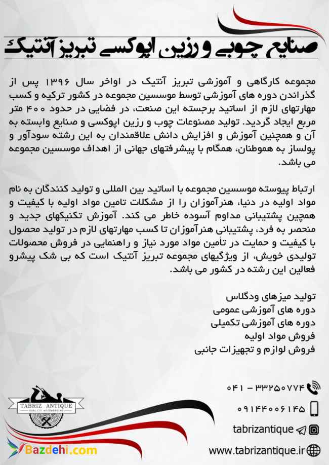 مجموعه کارگاهی و آموزشی تبریز آنتیک تولید کننده میزهای ودگلاس نمایندگی و فروش رزین اپوکسی ترکیه دورهای کارگاهی ساخت میز های ودگلاس :: www.tabrizantique.ir :: 09144006145